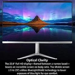 - 23.8″ Full HD Widescreen IPS LED Back-lit Screen | 250nit Brightness; 16:9 Aspect Ratio; Tiltable from -5 to 25