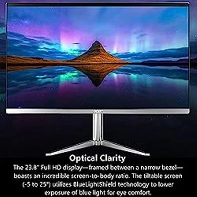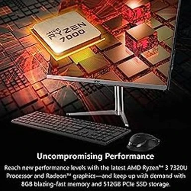 - SLIM. PREMIUM. STUNNING: This premium AIO PC pairs unmatched speed with Windows 11 Home for daily productivity. Enjoy crisp colors that this cool, 23.8″ Full HD PC delivers. It features the latest AMD Ryzen 3 7320U Processor, Radeon graphics and fast Wi-Fi 6E connectivity.