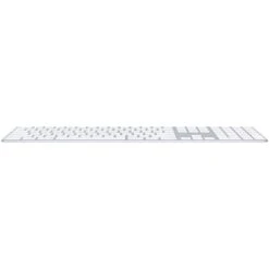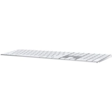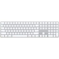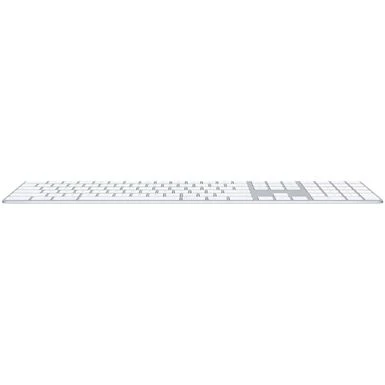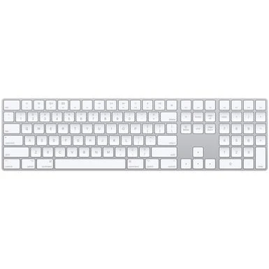 Magic Keyboard with Numeric Keypad features an extended layout, with document navigation controls for quick scrolling and full-size arrow keys for gaming. A scissor mechanism beneath each key allows for increased stability, while optimized key travel and a low profile provide a comfortable and precise typing experience. The numeric keypad is also great for spreadsheets and finance applications. And the built-in, rechargeable battery is incredibly long-lasting, powering your keyboard for about a month or more between charges.