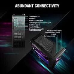 - Strix Styling The sleek and minimalist chassis design features a mesh front panel, a double D-ring handle, a headset holder, and subtle RGB lighting for additional personalization.