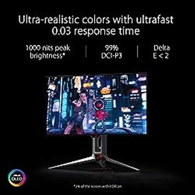 - Ultrafast 0.03 ms response time, plus the darkest black hues, high perceptual 1000 nits peak brightness (3% of the screen with HDR on), 99% DCI-P3 gamut, and Delta E < 2 color difference for astonishing HDR performance