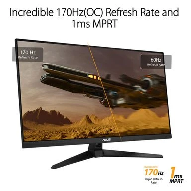 TUF Gaming VG32AQA1A delivers stunning visuals from all angles. With overclock to 170Hz refresh rate decimates lag and motion blur to give you the upper hand in first person shooters, racers, real-time strategy, and sports titles. This ultrafast refresh rate lets you play at the highest visual settings and lets you react instantly to what’s onscreen – so you’ll get that first strike in.