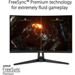TUF Gaming VG27WQ1B is a 27-inch, QHD (2560×1440), curved display with an ultrafast 165Hz refresh rate designed for professional gamers and those seeking immersive gameplay. Those are some serious specs, but not even the most exciting thing the VG27WQ1B has in store. Its impressive curved display features a 165Hz refresh rate and Adaptive-Sync (FreeSync Premium) technology, for extremely fluid gameplay without tearing and stuttering.