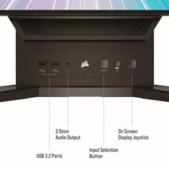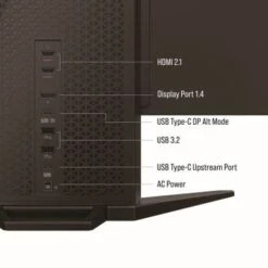 - Integrated stand with innovative front I/O panel with 2x USB 3.2 ports, a 3.5mm audio output, and input select button within easy reach. Rear I/O with dual HDMI 2.1, DisplayPort 1.4, USB Type-C with DP alt mode, 2x USB 3.2 ports and USB Type-C upstream ports.