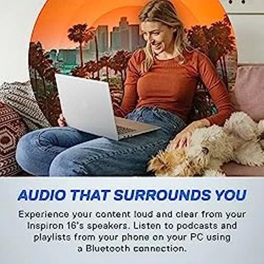 - AUDIO THAT SURROUNDS YOU: Immerse yourself in surround sound audio on the Inspiron 16-inch laptop. Connect your phone via Bluetooth to enjoy podcasts and playlists with crystal-clear quality.