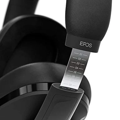 The EPOS H3 design features a built-in stainless steel slider in the headband. The length indicators and click stops on the slider allow the user to easily find and remember their most comfortable fit. The new design also features hinged ear cups that angle to fit any face shape.
