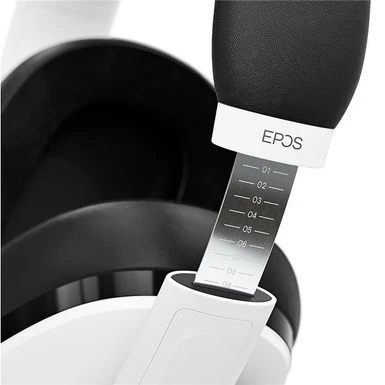 The EPOS H3 design features a built-in stainless steel slider in the headband. The length indicators and click stops on the slider allow the user to easily find and remember their most comfortable fit. The new design also features hinged ear cups that angle to fit any face shape.