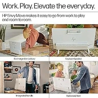 - BUILT TO MOVE WITH YOU – HP Envy Move 23.8 inch All-in-One PC is movable and rechargeable. So you can take your business, recipes and workouts from the desktop to the countertop and back again
