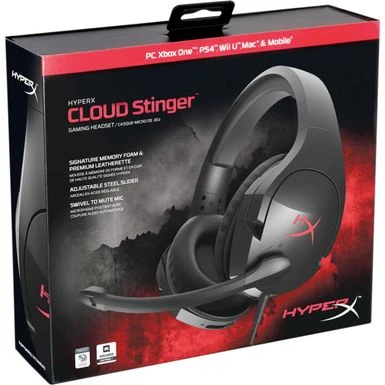 HyperX Cloud Stinger is compatible with PC, Xbox One, PS4, Nintendo Switch, and mobile devices and has a single 3.5mm stereo plug (4 pole) and PC extension cable with dual 3.5mm stereo and mic plugs. Enjoy the same comfort and enhanced audio experience on PC or console, or just plug into your mobile device and wear it on the go.