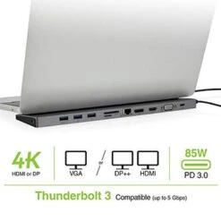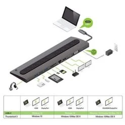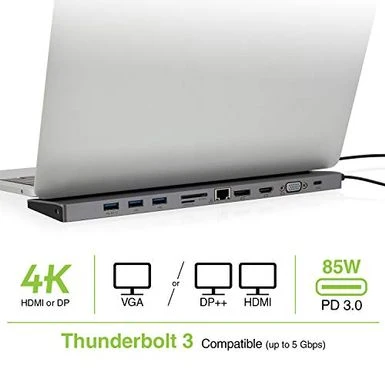 - Instantly dock up to 8 devices including: 3 x USB 3. 0 (USB-A) with 1 x BC 1. 2 quick charge port built-in memory card readers (SD/MMC/Micro SD) simultaneously reads both card ports 3. 5mm Audio input/output Gigabit Ethernet HDMI (4K), DisplayPort (4K) or VGA* DP++ mode – supports use of active Display adapters