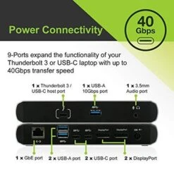 Quickly expand your laptop to a fully functional workstation with the included Thunderbolt 3 cable to access a variety of connectors. Onboard ports include an audio/speaker jack, a Gigabit Ethernet port supports your high-speed Internet connection and two (2) DisplayPorts. Or connect your mobile devices to the docking station’s (3) USB 3.0 and one (1) USB-C port for data sync and charging convenience. No software needed to access the full potential of the Quantum Dual Mode Thunderbolt 3 Dock Pro Station.