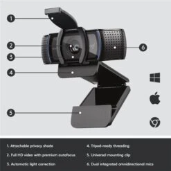 With a 78 degree fixed field of view, the C920e captures a just right view of the user and their environment in a well-balanced frame and also provides sufficient room to visually share projects.