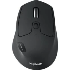Succeed in a multi-device world with M720 Triathlon Mouse. You’ll power through tasks by switching seamlessly between 3 computers, and fly through documents and web pages with hyper-fast scrolling. Boosted efficiency means this Bluetooth and Unifying mouse lasts for 24 months on a single AA battery. All that in a full-size shape fitting comfortably under your hand.
