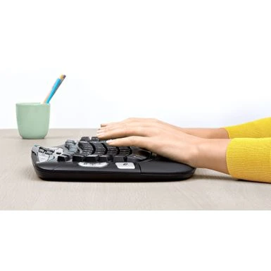 - A cushioned palm rest helps position hands comfortably and properly on the keyboard—and offers a comfortable place to rest your palms when you’re not typing.