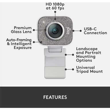 Logitech StreamCam streams and records in full HD 1080p resolution at 60 fps, delivering stunning video content with smooth motion to every aspect of your online world. From recording YouTube videos to streaming on Twitch and beyond, StreamCam’s premium glass lens and smart auto-focus system make it easy to get professional-quality results. Advanced features like auto-framing and intelligent exposure ensure you always look your best in any lighting.