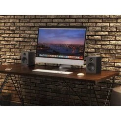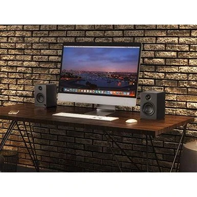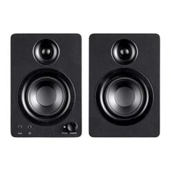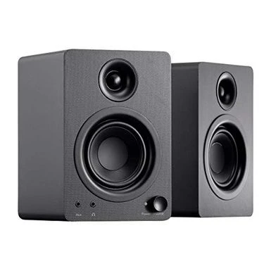 - Premium drivers and build high-performance drivers. Compact, ported cabinet. Clear, full audio is delivered by high-output 3.5″ Polypropylene woofers and 0.75″ Silk dome tweeters that are powered by a 50-Watt class AB amplifier. The rounded and ported MDF cabinet has been custom tuned for superior near-field frequency response and sonic performance, while ensuring that they look as good as they sound.