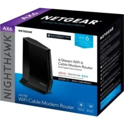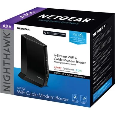 Interconnect your smart devices at home with this NETGEAR Nighthawk AX6 cable modem router. The NETGEAR Armor protection keeps your data secure, while the six-stream dual-band Wi-Fi 6 offers speeds of up to 2.7 Gbps to deliver smooth streaming on multiple devices. This NETGEAR Nighthawk AX6 cable modem router features a built-in DOCSIS 3.1 cable modem to support ultra-fast multi-Gigabit internet, and the Smart Connect feature enables seamless setup.