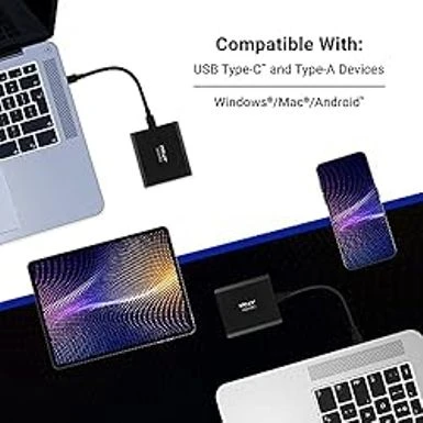 - Compatible with USB Type-C and Type-A enabled PC and Mac computers, as well as USB Type-C and Type-A enabled tablets, via the included cables
