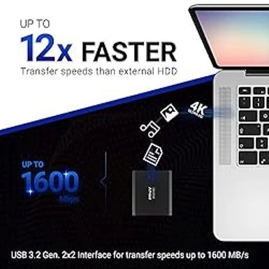 - Transfer speeds of up to 1,600MB/s read and 1,500MB/s write