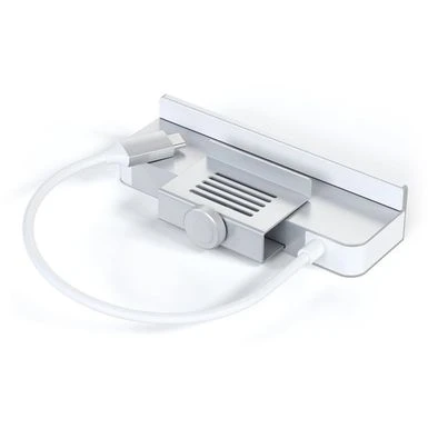 Its updated design securely fastens onto the bottom of your 2021 iMac with its adjustable knob and plugs into the one of the iMac’s backside USB-C ports – no extra tools or installation required.