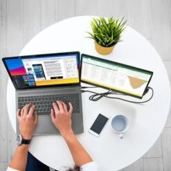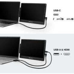 - Your laptop must have a thunderbolt USB-C port or both a USB-A & Mini HDMI ports for each monitor to use this triple screen setup. Check the compatibility section to learn more.