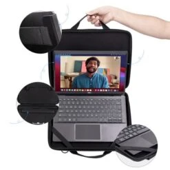 The EVA structure of the case protects from the shock associated with accidental falls off desks or drops during your commute to the classroom or work. Confidently store your device in a backpack or luggage, the EVA design will absorb the pressure from the objects around it. The dura-fabric material is scratch resistant and easy to clean.
