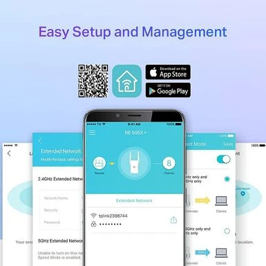 - Create a mesh network that only needs one name and password by pairing RE505X with a TP-Link Mesh router. You can easily roam from room to room without changing your WiFi network.