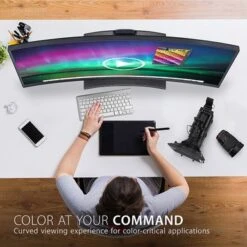 - Immersive 2300R ultrawide curved viewing experience with panoramic images, vivid color, and incredible detail